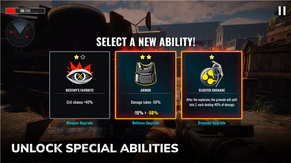 2、完成任务以解锁各种强大的武器。打倒僵尸并收集战斗中掉落的武器。