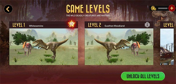 恐龙狩猎者是一款射击狩猎游戏,玩家在本作中的狩猎目标不再是那些比自己小或者与自己体型相当的野生动物,而是侏罗纪时代的陆上霸主恐龙,玩家将前往侏罗纪世界,利用手中能够倾泻强大火力的枪支将那些看起来十分可怕的恐龙逐一击倒。恐龙狩猎者提供了超过30只突击步枪与狙击枪,每种武器类型各占一半,且每只武器的属性与威力各不相同,玩家需要根据关卡中的情况选择合适的枪械,方可确保自己不会葬身龙口。当然,恐龙狩猎者也提供了众多恐龙种类可供玩家狩猎,其中不乏强大的霸王龙与会飞翔的迅猛翼龙,将给玩家的狩猎之旅带来十足的挑战。喜欢恐龙狩猎者的话,就快快下载游戏,加入狩猎恐龙的行列吧!