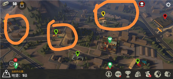 因为单机地图刷新时间限制基础材料的获取而且前期萌新基础物资需求同样很大,所以去公园(木头石头)和城市(铁屑)等基础资源密集丰富的联机图(地图上图标有拳头即为联机图)十分必要。但是联机图时常有高级装备人抓人或者打架,以萌新的装备很容易暴毙。所以卡单机是前期刷资源的首选。