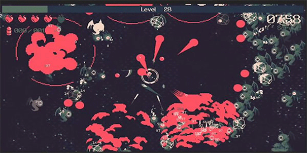 伤害不能说有,只能说是爆炸。一棵树的血量不知道多少,但他就是能打爆,点弹射别点穿透,攻击键一按下去就是清屏,然后子弹稍微大一点,最大的效果是这样