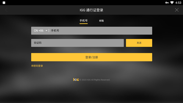 1、下载安装前线对决最新版本手游,启动后,点击IGG通行证登录;
