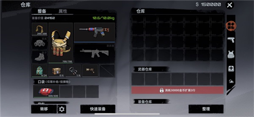 仓库空间分为通用仓库与特定物品仓库例如:武器仓库,装备仓库…