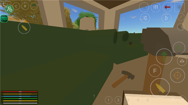 3、进入游戏后,我们可以探索周围建筑,寻找你想要的资源,碰到可以拾取的东西,它会显示出来,玩家点击f即可拾取;