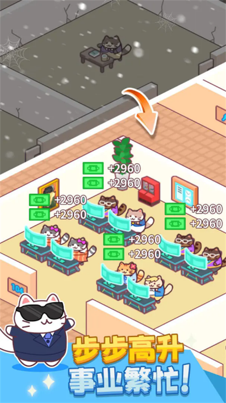 搬砖之王是一款趣味十足的休闲模拟类手机游戏,玩家将在游戏中扮演一位公司的老板,从招募可爱的喵咪员工开始逐步建设壮大自己的公司,打造属于自己的商业帝国。在搬砖之王中,玩家的一切建设工作都以资金为核心,但倘若一味的追求效率与利润也将会在接受审查时因员工待遇不周遭受巨额罚款,能否平衡效率与利润以及公司内部的福利待遇,是玩家可否成功建立商业帝国的关键。对搬砖之王感兴趣的话,就快快下载游戏体验吧!