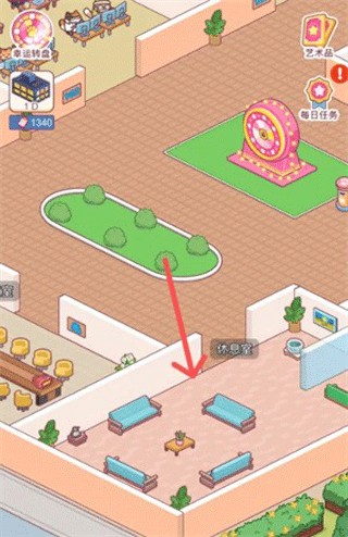 1、进入主界面,找到休息室,点击任何一个区域进入。