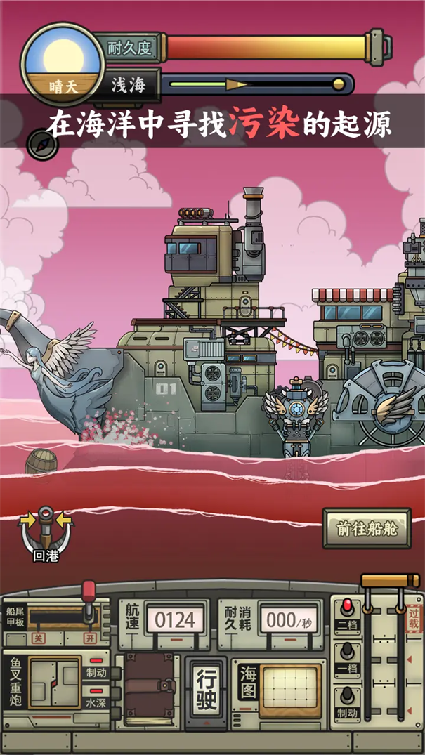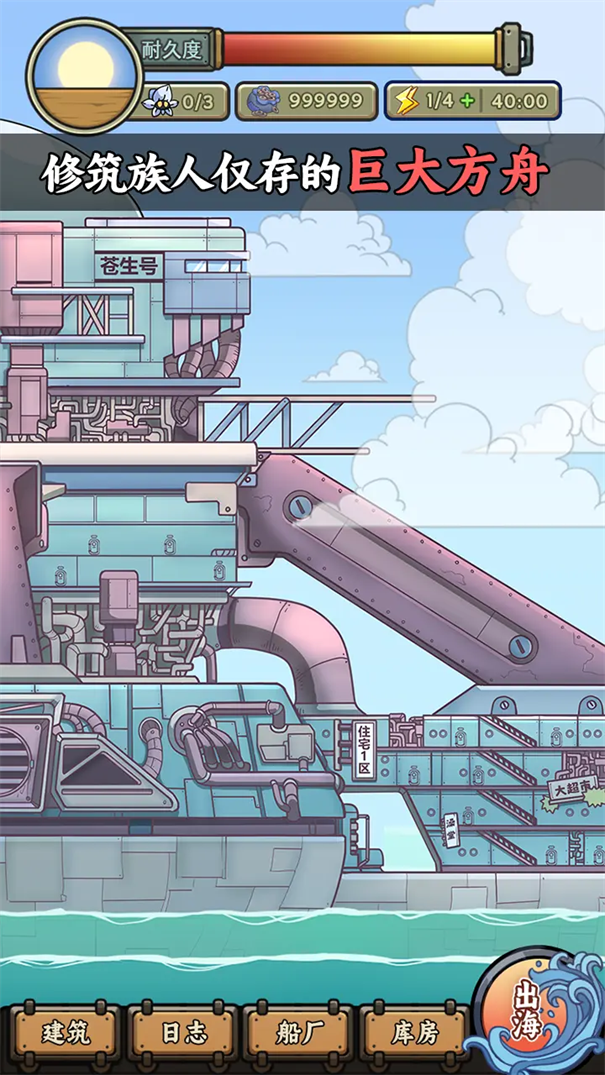 2、因为方舟在海上不断的运动,所以你每次出海都会遇到不一样的挑战,海水在常年的感染里充满了高腐蚀性的物质,你必须在船体的耐久度达到0之前返回方舟