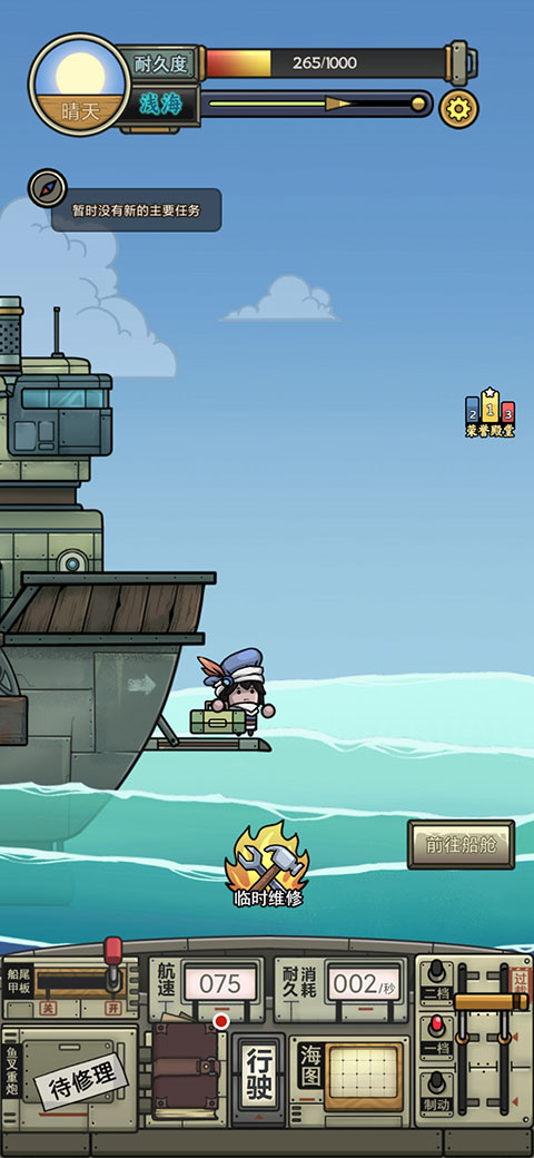 2、出海需要满足特定条件:船体耐久不低于200,且至少需要一格体力。