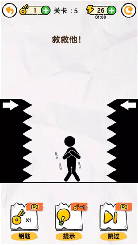 这是一款原创的益智解谜小游戏,里面饱含海量烧脑关卡,每一关,都有一个火柴人等着你开动思维来拯救他!