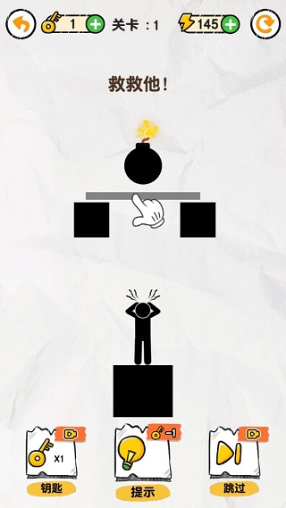 1、以火柴人为主题的画线救援游戏,打开脑洞救救火柴人吧