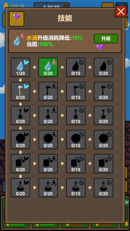升级水滴后,每次滴落的伤害与金币收益都会显著提升,这是前期最划算的投资。