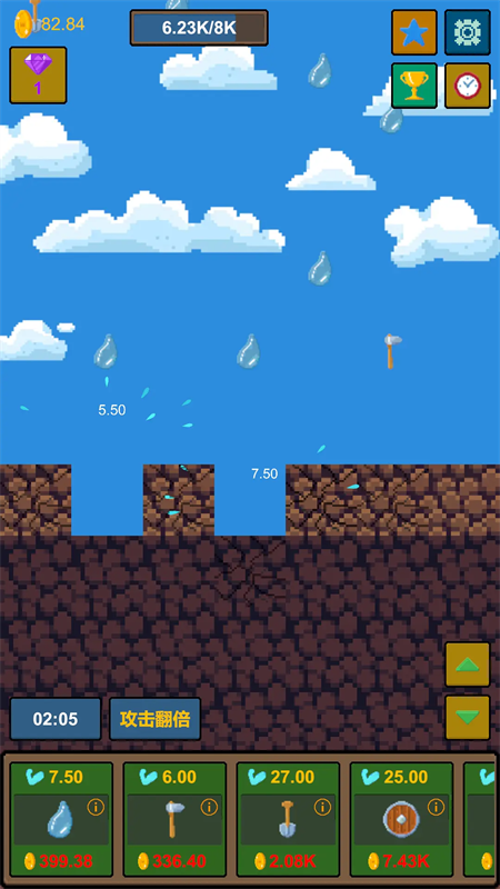 4、例如,锤子可以加速水滴对石头的侵蚀速度,铁镐则能够一次性造成更大范围的伤害,盾牌则在防御上提供保护。