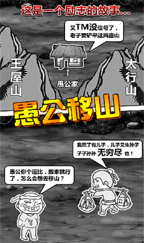 4、愚公移山在游戏中,脑洞无处不在,希望你的快乐也四处可见。