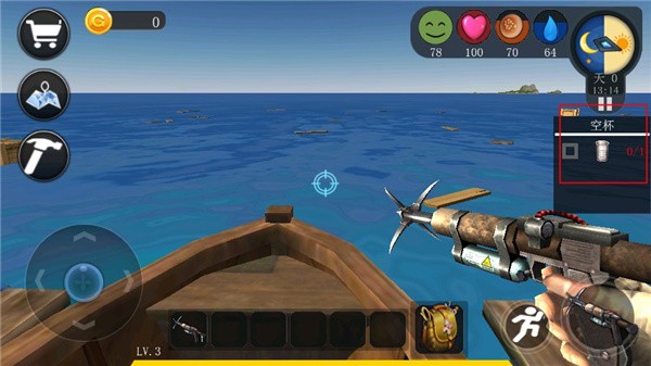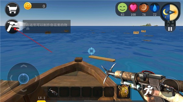 3、收集各种材料来改造你的木筏不惧风雨勇往直前