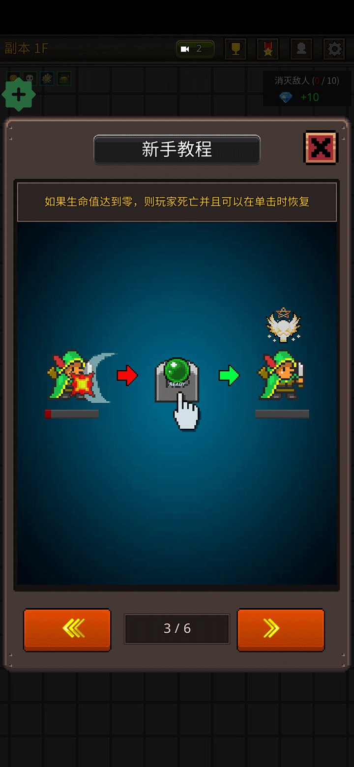 3、若角色生命值被耗尽,将会倒下。此时只需再次点击即可让角色立即复活继续战斗。