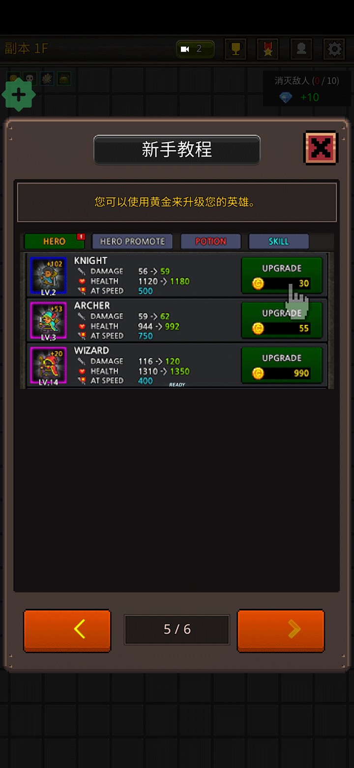 5、每次击败敌人都能获得金币奖励,这些黄金可用于提升英雄等级,加强整体战斗能力。