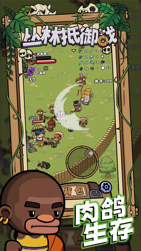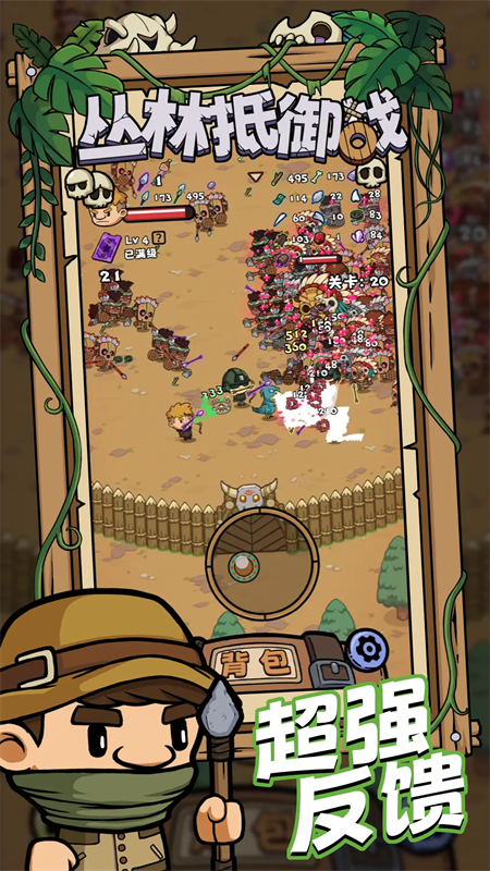 丛林抵御战是一款Roguelike生存冒险类手机游戏,融合了俯视角动作战斗与局内探索收集生存玩法,并以支持自定义装备池的设计为卖点,玩家可以自由选择自己在战局中能够获取的武器装备池,获取的武器装备都将在玩家既定的装备池中抽取,让玩家在角色养成与经营过程中能够更加轻松地获取所需的物品,也使玩家能够收获更优质的游戏体验。同时,丛林抵御战集结了诸多依据现实知名热梗为原型打造的角色,不仅有敬爱的牢大以及爱打篮球的坤坤,还有擅长做人的汉尼拔以及卡其脱离太的守卫,为玩家的战斗冒险增添更多的乐趣。对丛林抵御战感兴趣的小伙伴们不容错过给,赶紧下载游戏体验吧!