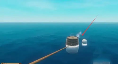 1、首先进入游戏之后,在木筏上准备好生活必需品:淡水收集器,火、床等