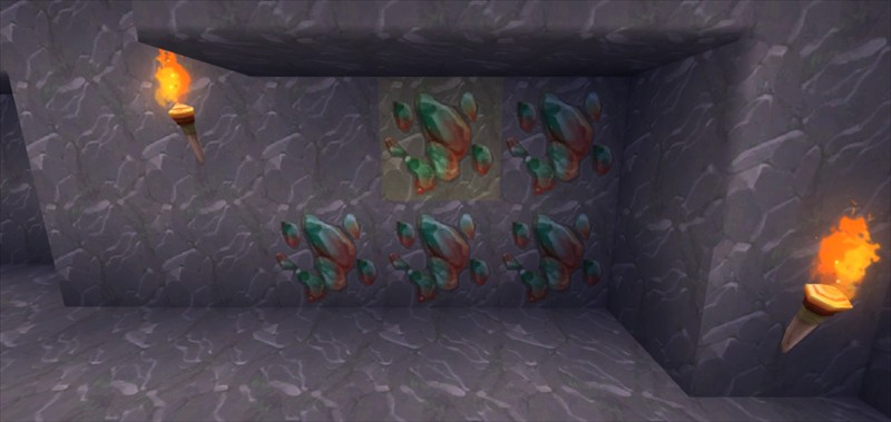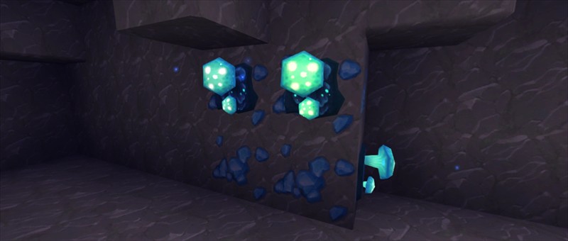 在洞穴中找到的几率很低。使用铁或更好的镐来获得钻石。用于工具、盔甲等。