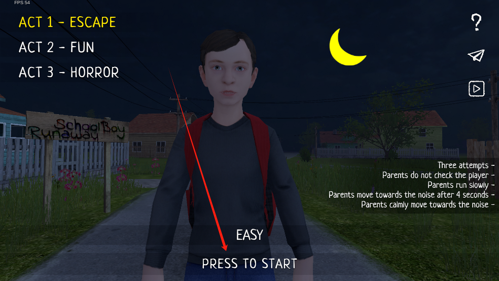 1、真实的3D引擎制作精细场景,最大程度放大了恐惧,昏暗的走廊,吱吱作响的地板,和突然的、令人不安的噪音。当父母在房子里寻找他们离家出走的儿子时,你会感到每一步都紧张。