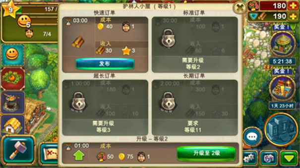 选择建造房屋,并把它置于你想要建造新房屋的地方。选择完成后便可有闲暇的村民去自动建造,若一个村名正在忙碌其他工作,他只能在完成这项工作后才能开始新的工作,所以在建造时,要注意闲暇村民的数量,从而保证建造的有序进行。其中为了便可游戏的进度,里面有建筑加速功能。