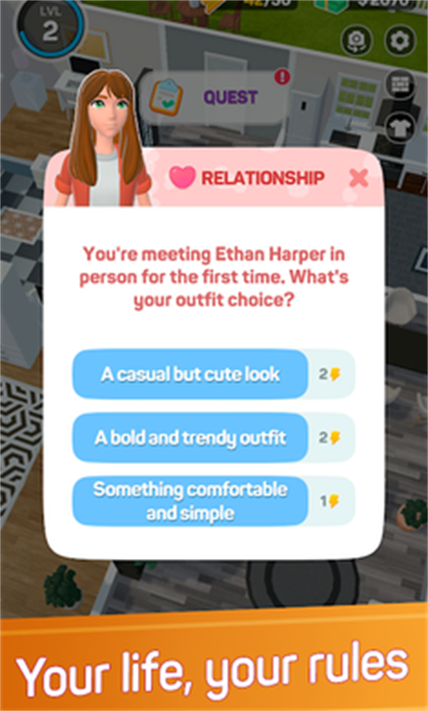 1、在这款沉浸式模拟游戏中,创建你的家庭,设计你的家,并做出改变人生的选择。