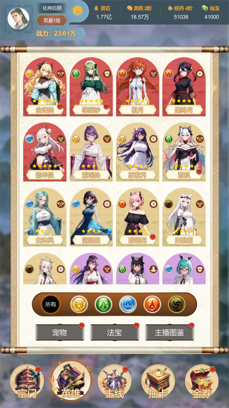 4、弟子培养自由度高,能根据弟子的天赋适合功法和发展方向,配合种族组合羁绊动作,打造专属美少女修仙天团,战略性十足。