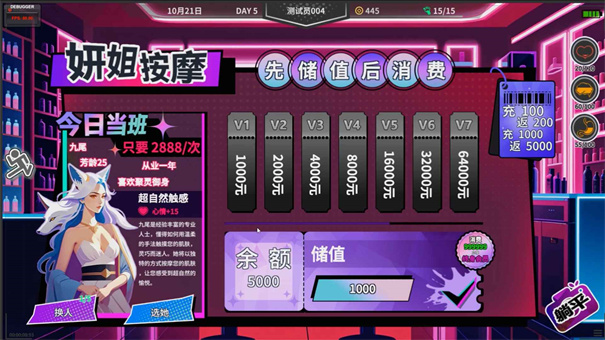 而其中更有意思的就是里面还可以按摩,但是不是直接付钱,是需要充值才可以按摩,充值也会有相应的金额赠送,这与我们现实生活也是比较贴切的。