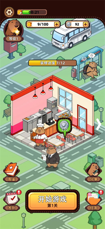4、达到阶段目标后解锁新店铺类型,合理规划城市布局,形成美食商业生态圈。