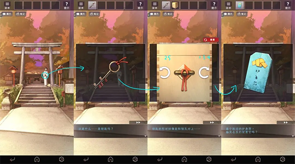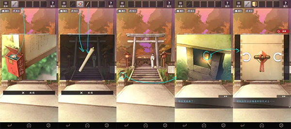 依照提示查看左右两边的灯笼,在右侧灯笼里取得蜡烛,并根据灯笼图案叠加解开小箱子。