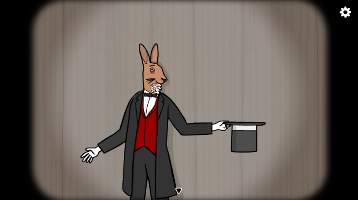 2、跟随神秘的兔子先生,体验20个荒诞离奇的魔术表演桥段。