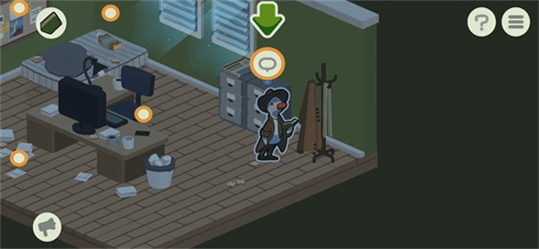 2、点击屏幕即可控制鸭子侦探移动,当场景中出现黄色圆圈时,点击它们即可搜寻关键线索;