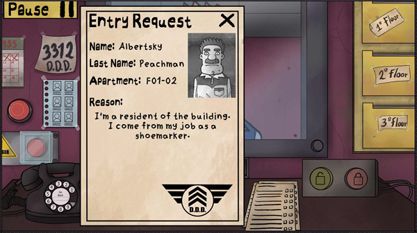 4、你将扮演门卫找出闯入居民楼的伪人。你的工作将是允许或拒绝请求进入建筑物的对象进入。