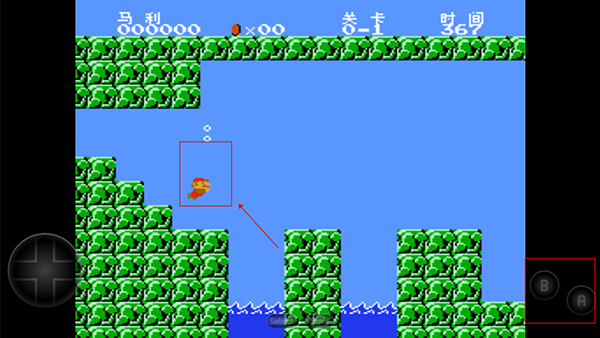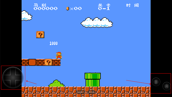 2、左边是移动键,可以自由的移动马里奥,右边按键是跳跃,吃蘑菇角色会变大一倍哟;
