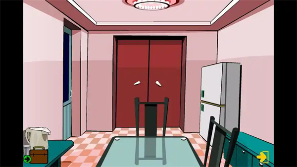 13、进入电子门,重新输入六位密码。两次往右,然后上楼,在楼梯的拐角处的角落里,找到一个粉红色钥匙。往下回到一楼,用粉红色钥匙点击深红色的门。
