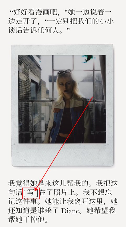 6、拍照后,点击“写”,继续剧情。
