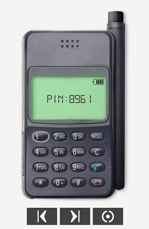 翻到手机处,输入密码8961解锁手机(左右箭头按钮控制按键左右位置切换,第三个按钮为确定按钮。RECALL重拨,C删除,绿色拨打,红色挂断)。