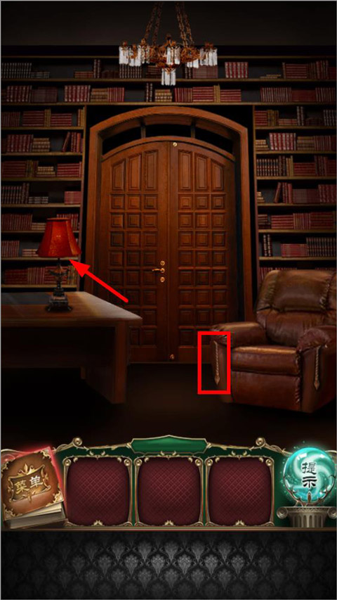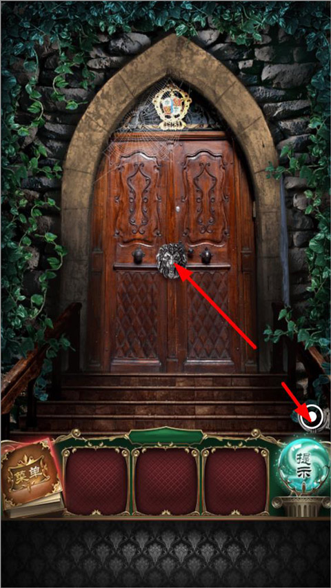 1、第一关属于新手关卡,我们只需要根据提示点击右下角发光的那个道具,放到门把手上即可过关,进入第二关。