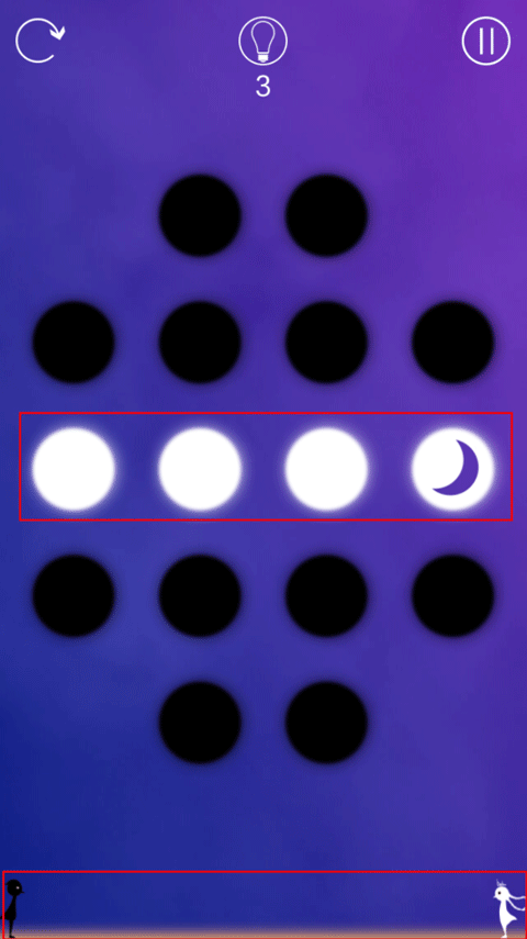2、接下来就是开始正式的关卡,当你将白色圆圈向左滑动进行翻转,游戏关卡结束,下方的男孩和女孩就可以再次相见。