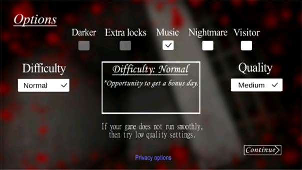如果你第一次接触这种类型游戏,最好将难度设为EASY(简单)难度,或许她会变得温柔一些...游戏中还可以设定黑暗迷雾模式,也就是说你的可视距离变得非常小了,前方一片黑暗,你永远不知道老奶奶什么时候会从黑暗中向你走来!