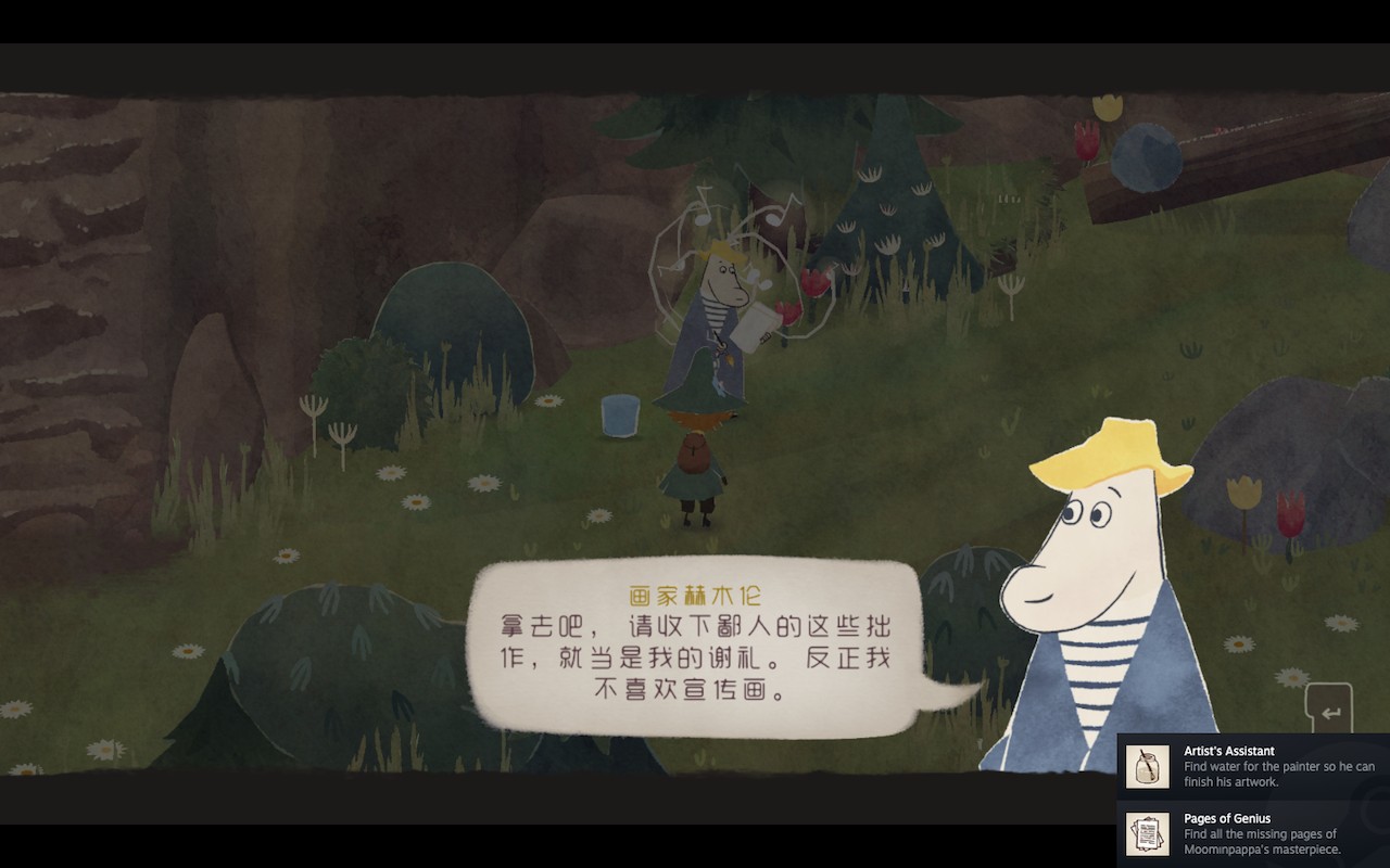 完成任务后他还会给你一张姆明爸爸的代表作,这样代表作的成就也就完成了。