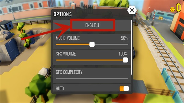 1、进入鲁莽大逃亡2游戏,可以看到游戏默认为英文,此时需要点击右下角的设置按钮;