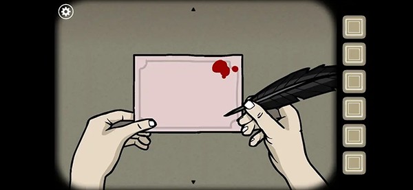 将手帕上的血迹抹在卡片上,羽毛塞进他手里。