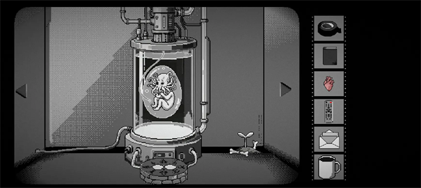 3、直面不可名状: 游戏充满了克苏鲁神话的元素。你将直面形态怪诞的雕像和那些不属于这个世界的“幼崽”,感受它们带来的无声恐惧。