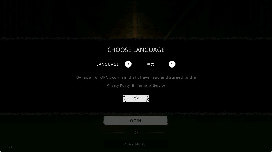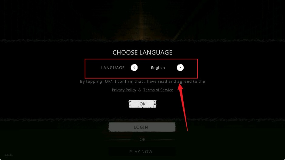 1、首次进入游戏时,会看到默认的英文界面,如下图所示。点击【English】右侧的按钮进行语言切换;