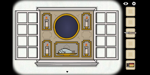 3、打开抽屉,第二格是小刀,第三格是一条鱼,第四格是第三支蜡烛;