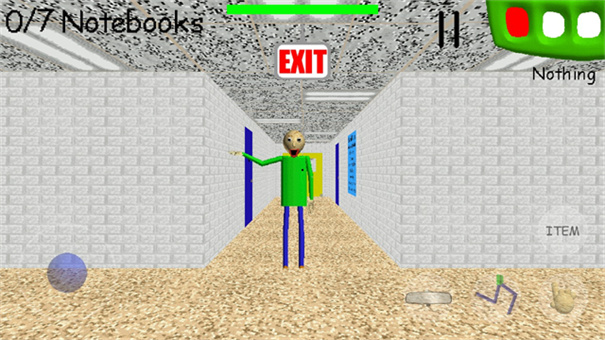 3、游戏中我们需要帮助巴尔迪在避开巴迪的同时收集满7本笔记本,然后逃出学校。