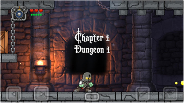 3、游戏的操作类似于大多数水平冒险游戏。左下角的虚拟按键控制角色的左右移动,右下角的两个虚拟按键分别是跳跃和攻击。
