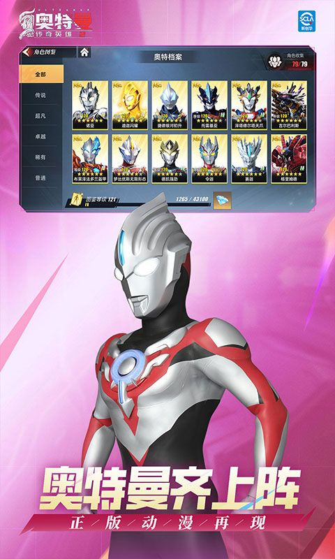 游戏里你将亲眼目睹迪迦、赛罗、欧布、特利迦、泽塔、布莱泽、泰罗、赛文、雷欧等数百位奥特曼角色以全3D高清形象闪耀登场!每一个角色都经过精心打造,足以震撼你的视觉感官!