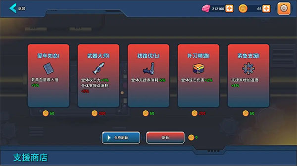可以购买一些支援,这些加成在本局是全程有效的,看自己需要购买。