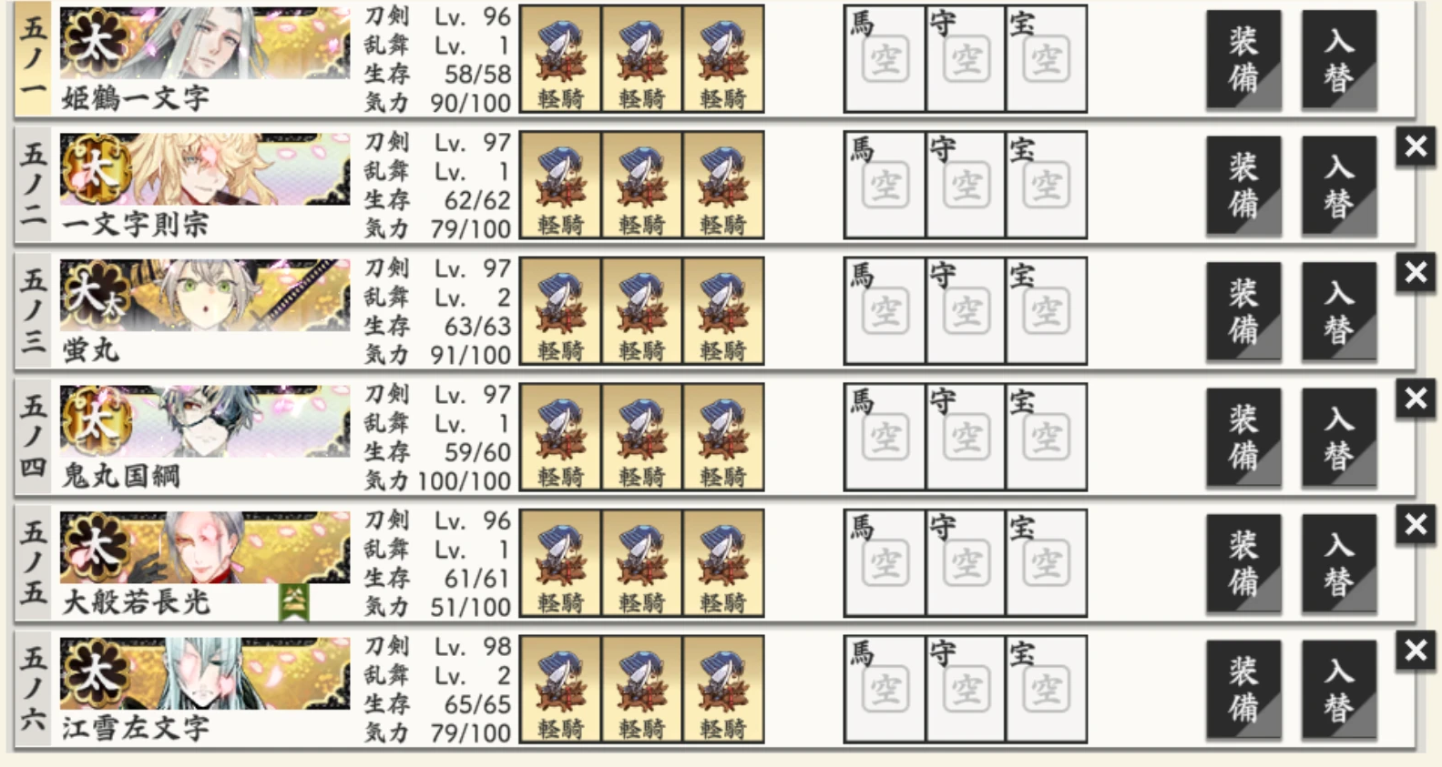 我个人想要跳过短刀痛苦的练级,所以在短刀用糖喂到30-40级后,去4-3练到50,随后直接塞进了6图夜战升级。